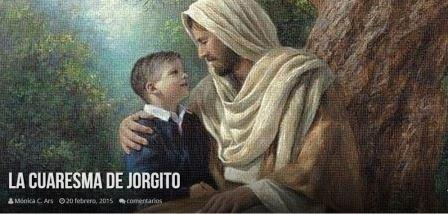 La Cuaresma de Jorgito no marchaba bien. Nuestro protagonista (que es pequeño, pero no tonto) se dio cuenta de que algo fallaba. Cada día que pasaba se notaba más frio, con mayor dureza de corazón; estaba irascible y distraído. Por si fuera poco, su gran Amigo, Jesús, no se le aparecía en la oración de las noches, y aunque lo buscaba, terminaba durmiéndose en la soledad oscura de su dormitorio. Jorgito andaba preocupado.