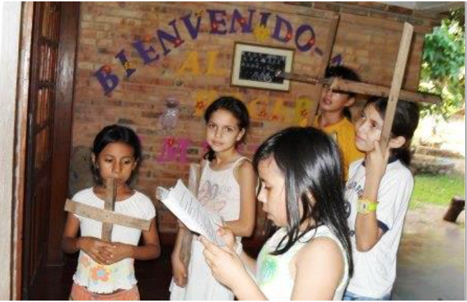 —¡Hijos, necesito dos palos de madera! ¡Vamos a hacer una cruz!